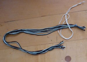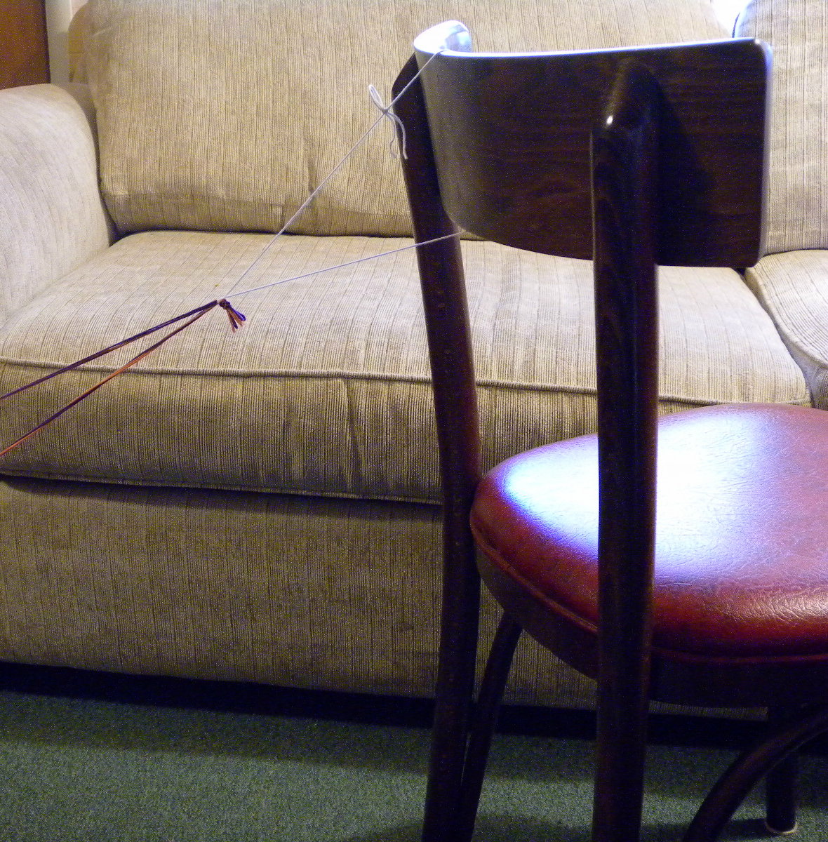 I cut some pieces of string, tied them to the back of a chair, and off I went! Not tried using my thumbs yet, so a 7-loop square braid is the ‘biggest’ I’ve done yet.