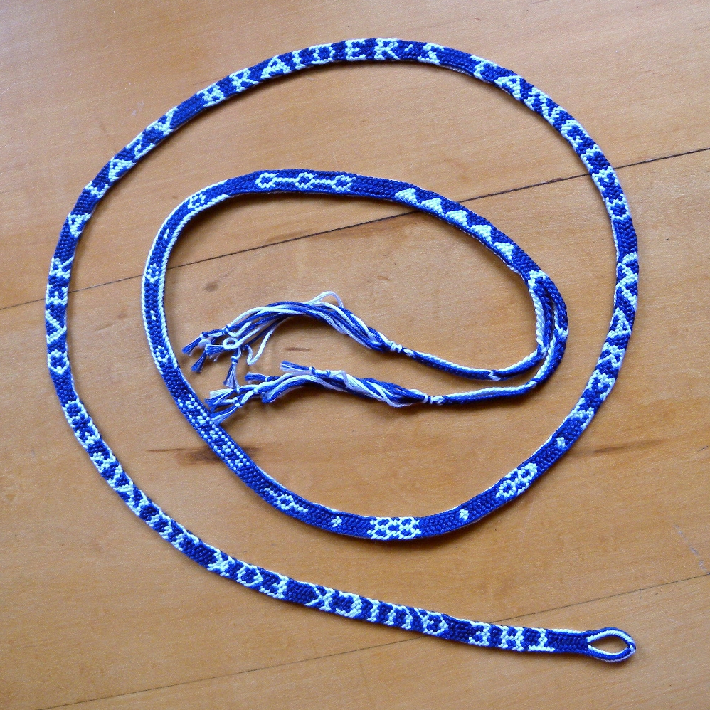 The video below is about the Wayuu people of Columbia and their textile crafts. It should start up right where two women are cooperating in loop braiding an extra-long braid – using the same technique on yet a third continent, here in the present-day. (If it doesn’t start there, slide the timeline “bubble” below the video to 2:25.)