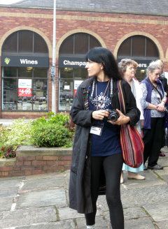 Here she is on the prowl for more of her great photos. (This was on Wednesday—our big outing day to the silk-weaving mill and museum in Macclesfield.)