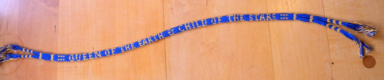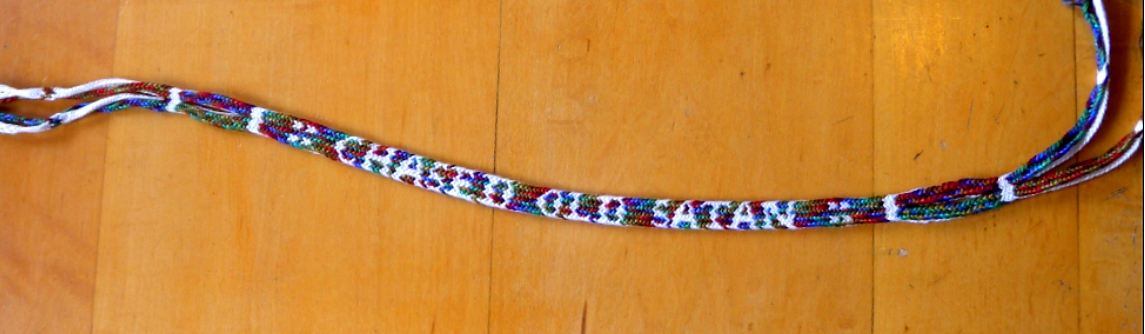 This is a ‘what I’ve been braiding lately’ post. It’s a letterbraid variation that I came up with last summer on a camping trip—an eighteen-loop version of the 17th Century letterbraid of fourteen loops. *1. (Click on photos for more detail)