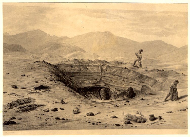 Grave robbers looting mummy bundles from an ancient tomb on the Paracas Penninsula, Peru. In 1927 Julio César Tello, Peruvian archeologist, followed clues from looted textiles sold on the antiquarian market to discover an ancient culture that had existed from 750 bce to 100ce, disappearing over a thousand years before the rise of the Incan empire. British Museum #Am,B52.10 ©Trustees of the British Museum. Any use of image subject to British Museum’s terms of use