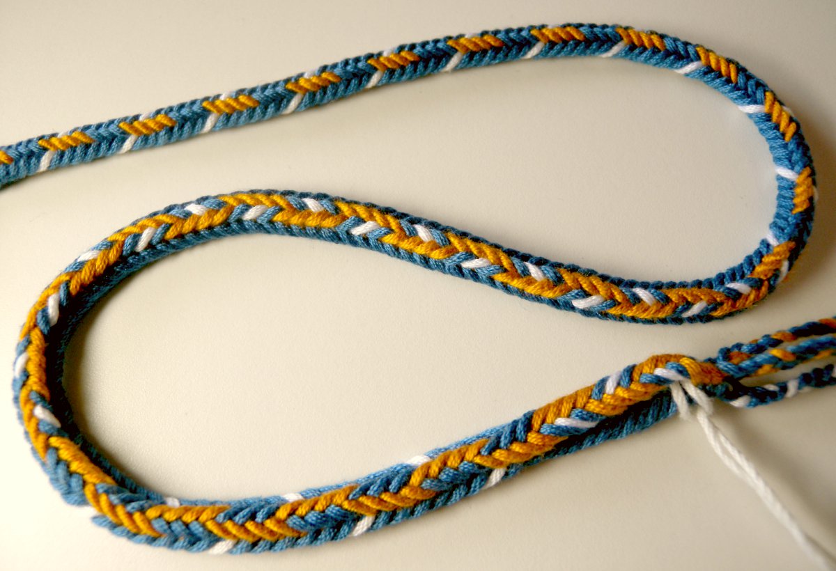 Using doubled embroidery floss would give similar results to these samples. But you can also use embroidery floss without doubling it, for smaller-diameter braids. I used this sport-weight yarn so the details would show more clearly in photos, for my own samples I usually use embroidery floss.