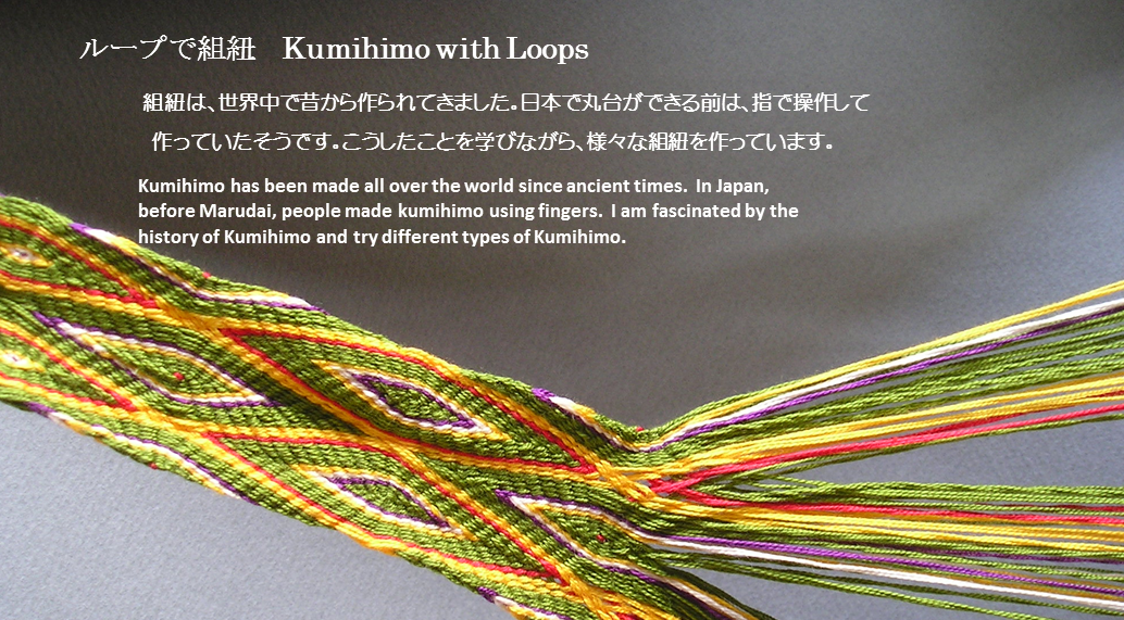 I just found out about an exciting new loop braiding blog: Fumiyo Kitahara’s Kumihimo with Loops (the Japanese term for Kumihimo with loops is Kute-uchi)