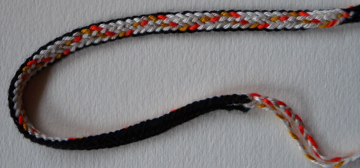 No-bicolor-loops braid pattern, hollow double braid, 8 loops: (above)
